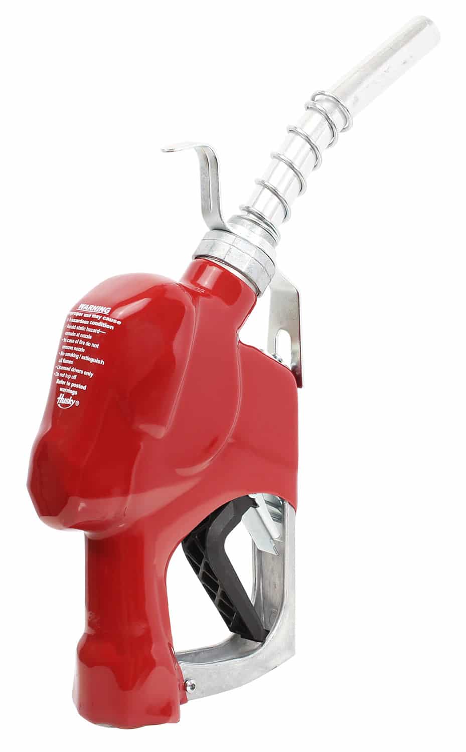Nozzle is equipped with unique Flo-Stop® device that shuts off the nozzle if it falls from the fill tank or raises above the horizontal.