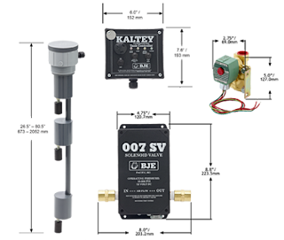 BJE engineers designed a float switch mechanism that alerts a control device when the day tank level is low. The control device activates a BJE 007 High or Low Tank Monitor that automatically starts a diaphragm pump to add waste oil to the day tank, then stops the pump at the proper fill level. Kaltey also has a second valve control system to protect against accidental overflows.
